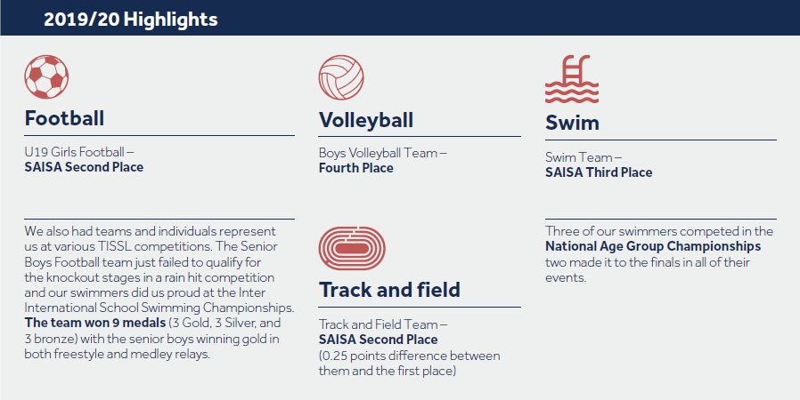 The Gecko Athletics uniforms continue to be more visible around the school, and are worn with pride by athletes from grade 5 right through to our graduating class of 2020. They will undoubtedly take our name to countries around the world in the coming months. Our students have represented their universities in track, court, and the pool in the UK, USA, and Czech Republic.
