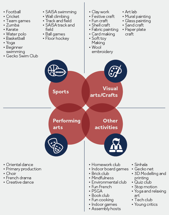 Arts Club Print making Creative Clay Beginning Sinhala Boys Voice Chess Colouring COMUN COMUN Exec Concert Band The Art of Pie making |